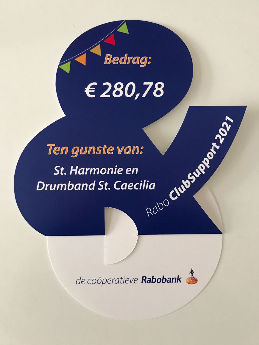 Met de Rabo Clubsupport actie 2021 van de Rabobank hebben veel mensen op harmonie St. Caecilia Kruisland gestemd. Hiermee hebben we het mooie bedrag van € 280,78 mogen ontvangen. Iedereen heel erg bedankt voor het stemmen!